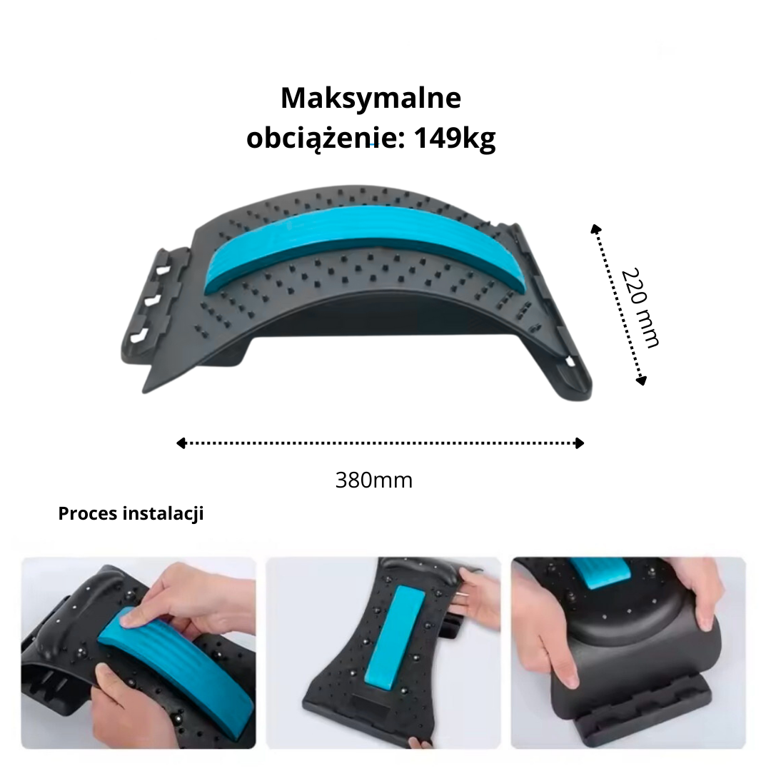 To urządzenie z ponad 44 punktami akupresury stymuluje krążenie, uwalnia napięcie w plecach i poprawia mobilność. Jego zakrzywiony design pomaga wyrównać kręgosłup, zmniejszyć sztywność i zapobiegać urazom, a jednocześnie oferuje terapeutyczny masaż, który łagodzi ból i stres.